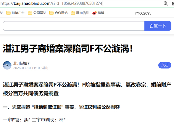 在此,我们替黄先生发出恳切呼吁:恳请广东省高级人民F院、湛江市相关司F机关及纪检监察部门介入,对该案进行全面、公正的重新核查,依法回应黄先生的全部质疑,提供相关证据及原始卷宗材料;恳请撤销该案中存在事实认定错误、程序违法的错误裁判,重新对财产分割与债务承担作出公正判决;严查案件中是否存在F官篡改证据、枉法裁判,以及相关人员相互勾结的违法违纪行为,还黄先生一个公道!