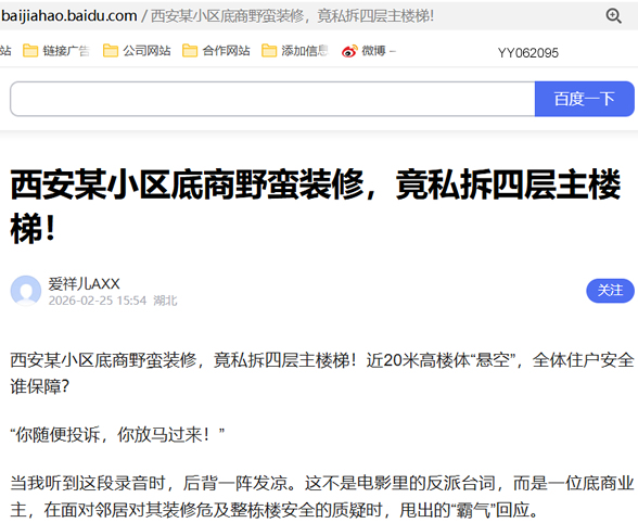 西安某小区底商野蛮装修,竟私拆四层主楼梯!近20米高楼体“悬空”,全体住户安全谁保障?